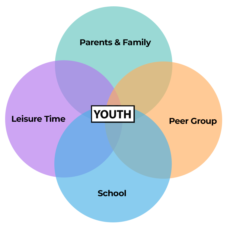 The model focuses on four key factors that can influence youth substance use: their peer group, family interactions, experience in school and how they spend their leisure time.